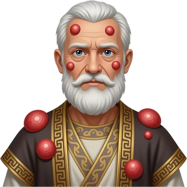 An old man in ancient clothing looks sick and is covered in large red boils cysts emoji
