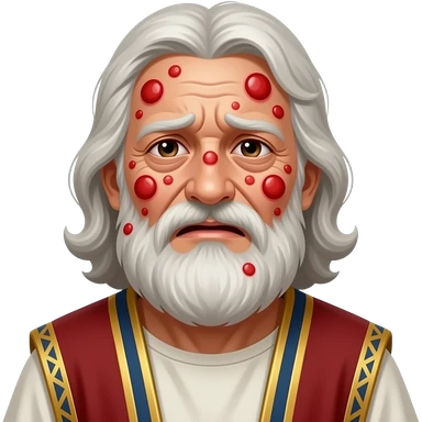 An old man in Bible times clothing looks sick and is covered in large red cysts all over his face with a look of misery on his face emoji