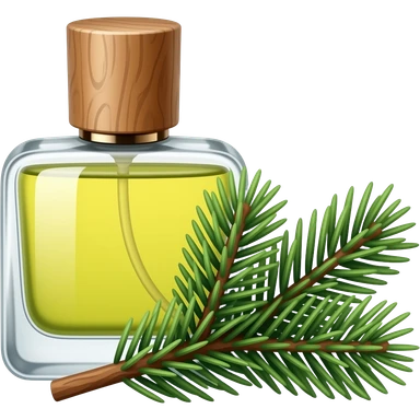 Духи древесные с красивой доевесно-зелёной баночкой и ель лежит рядом веточка emoji