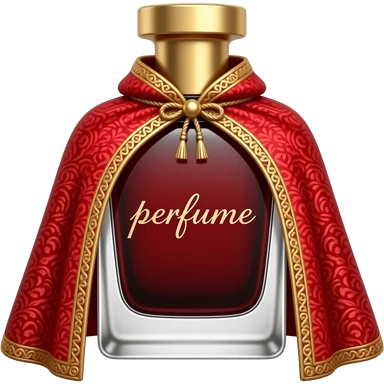 Духи, длинные высокие форма флакона выглядит как плащ, стеклянный. Крышка с блиллиантом красным, а смесь грандиегтовая красно-черная в колбе. Написано «духи» emoji