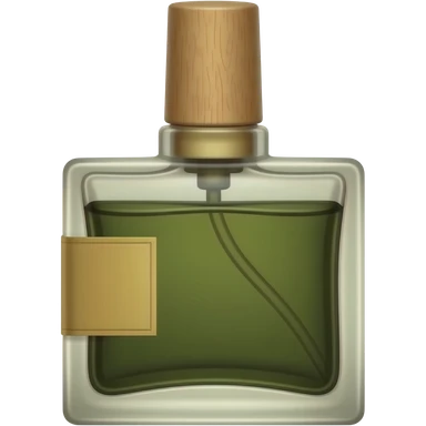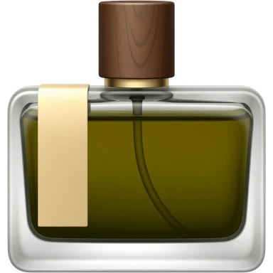 Дорогие духи амбровые с длинной темной деревянной крышкой и квадратным флаконом с темно-зелёной жидкостью, с бежевой этикеткой с с левой стороны тонкой и длинной emoji