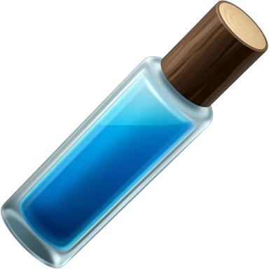 Духи флакон с темно-коричневой крышкой будто бы как попало отрубленной палки или дерева. Флакон длинный с голубой жидкостью внутри emoji