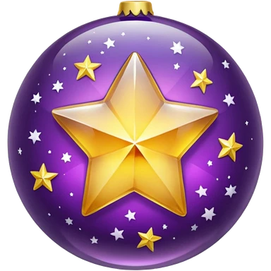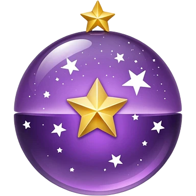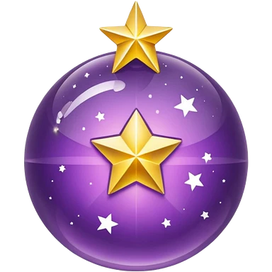 Uma esfera translúcida com reflexos roxos e azuis envolve uma estrela dourada brilhante no centro, criando um visual etéreo e futurista emoji