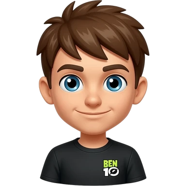 whit brown hair and brown eyes a 10 year old kid Long hair and anime black shirt emoji