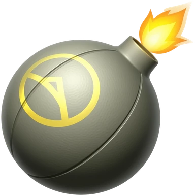 Father of All Bombs, massive bomb with a menacing face, exaggerated size, dramatic explosive details, apple emoji style emoji