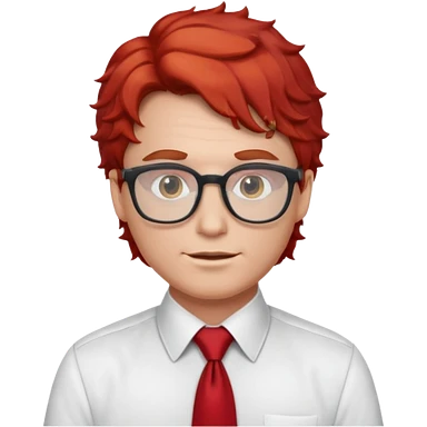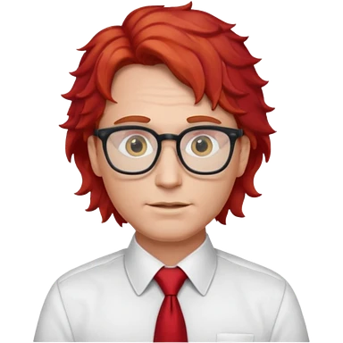 white man in white shirt, having red tie, red wavy hair, wearing glasses emoji