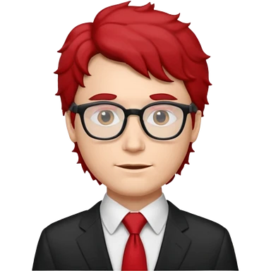 white man in white shirt, having red tie, black wavy hair, wearing glasses emoji