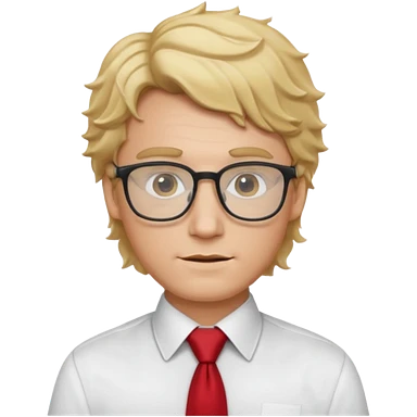 white man in white shirt, having red tie, blonde wavy hair, wearing glasses emoji