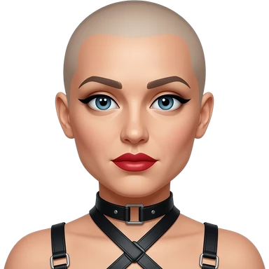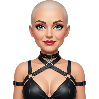 bondage bald lipstick eye shadow smokey eyes makeup bra 50 years old gag ball tied up harness feminized emoji | AI Emoji Generator