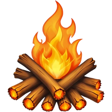 Emoji-style bonfire with logs and flames, cute and rounded, soft shading, bright warm colors emoji