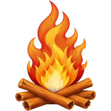 Emoji-style bonfire with logs and flames, cute and rounded, soft shading, bright warm colors emoji