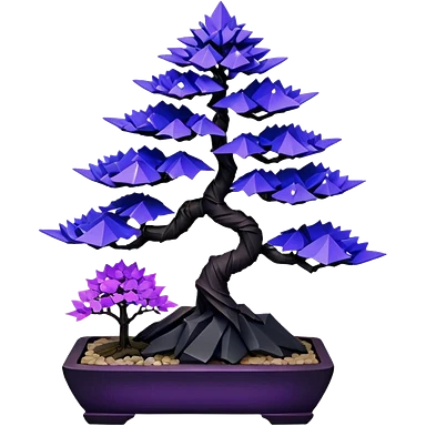Futuristic alien maples Bonsai hair-fine-leaf group crimson crystal azalea purple and cream blue forest planting in origami style pot emoji