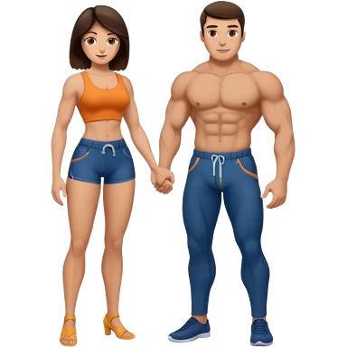 topless big boobs brunette woman unzipping muscular man's pants emoji