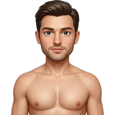 topless big boobs brunette woman unzipping muscular man's pants emoji