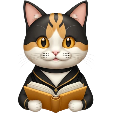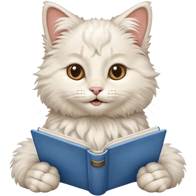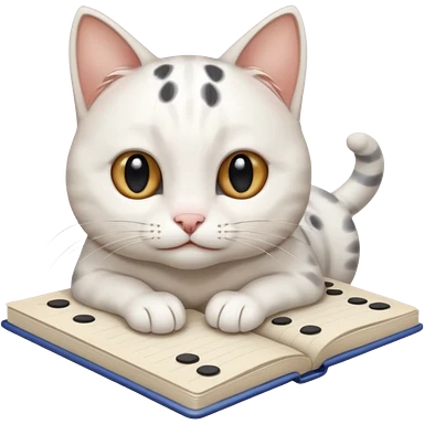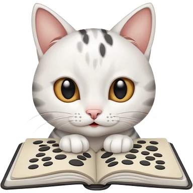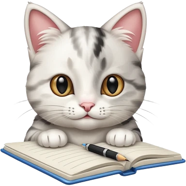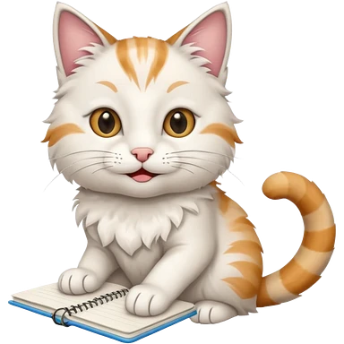 gatita feliz blanca con manchas negras atigradas viendo una libreta anillada emoji