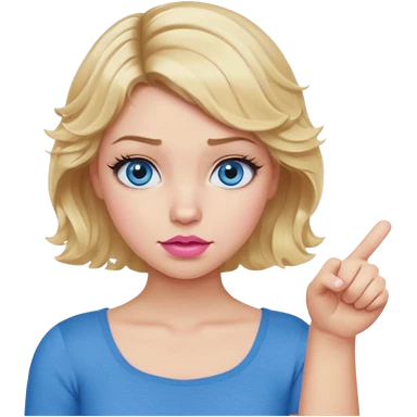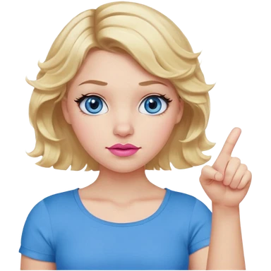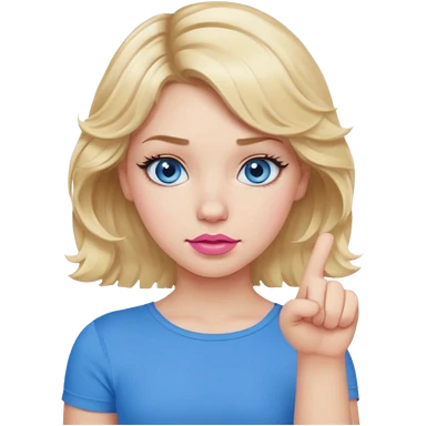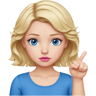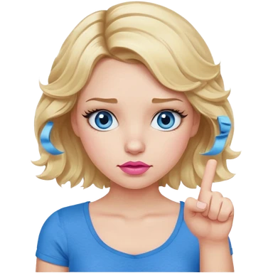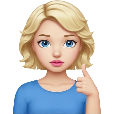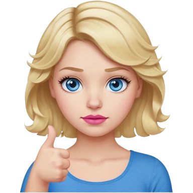 Girl Blonde short wavy hair, blue eyes, cute blue top, long lashes, pink lips, thumbs down emoji
