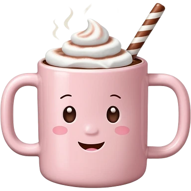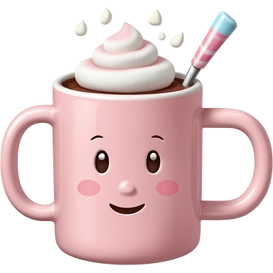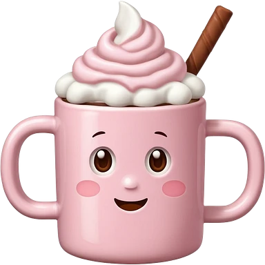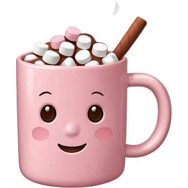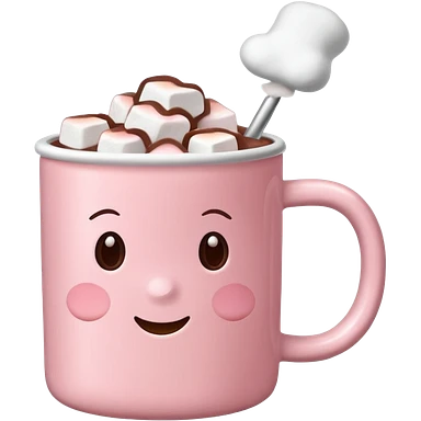 light pink mug with hot chocolate and marshmallows emoji