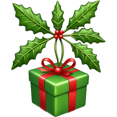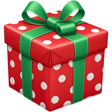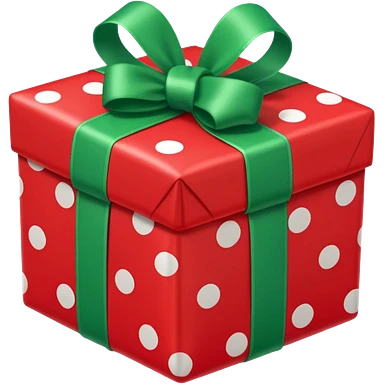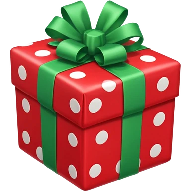 A red gift tied with a green ribbon in a white polka dot, emoji