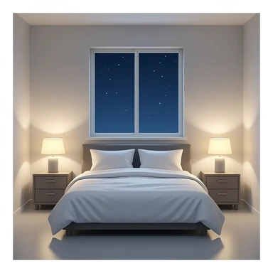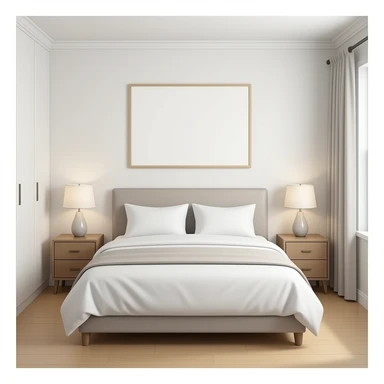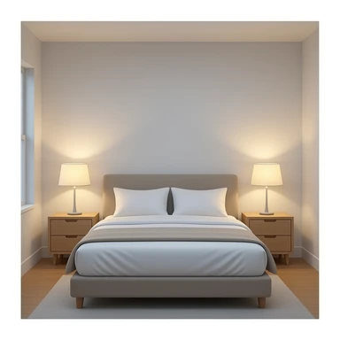 realistic bedroom neutral color only bed and nightstands emoji
