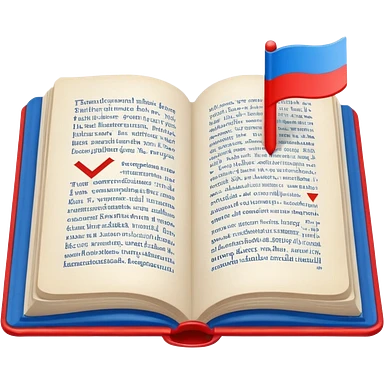 Open book showing Cyrillic text with a small Russian flag bookmark emoji