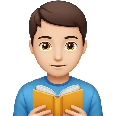 A man with specs white shirt and navy blue tie reading a book called New Human Revolution emoji