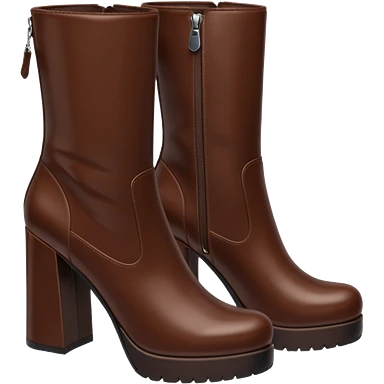 chocolate brown y2k boots block heeled, side zipper emoji