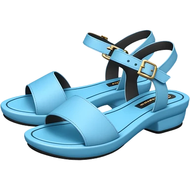 A 3D cartoon sky-blue open-toe sandal with ankle straps and smooth curved sole, isolated plain background, Memoji-style rendering. emoji