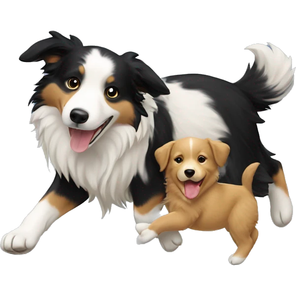 Border collie dog carrying a golden retriever puppy on its back emoji | AI Emoji Generator