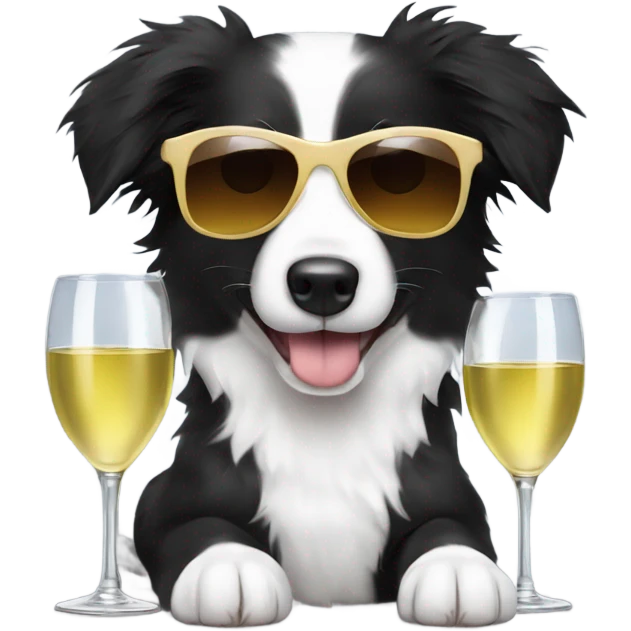 Border collie puppy with sunglasses and glass of white wine emoji | AI Emoji Generator