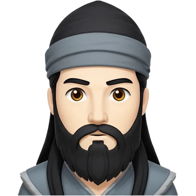 Boreas, North Wind God from Rome Mythology with long jet black hair and beard, dark gray outfit emoji