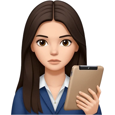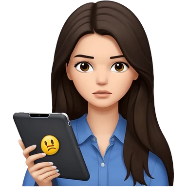 bored brunette with long hair holding iPad emoji emoji | AI Emoji Generator