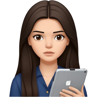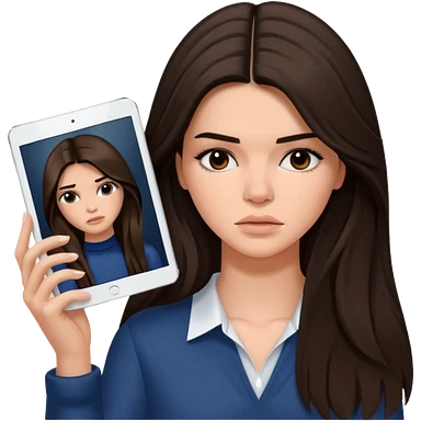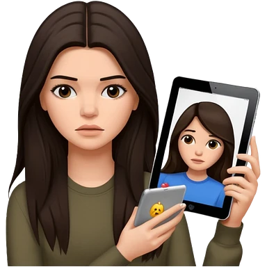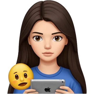bored and sad brunette Kendall Jenner with long hair holding iPad emoji emoji