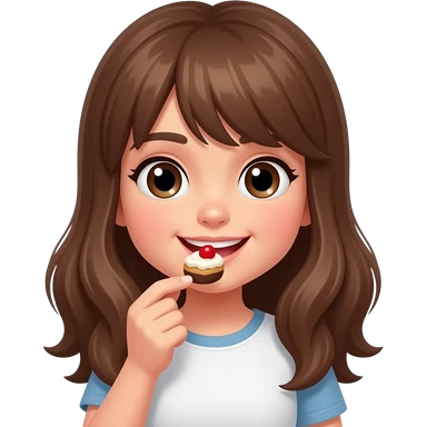 Çikolata yiyen, kafasında hijap olanbeyaz tenli kahverengi gözlü kadın emoji
