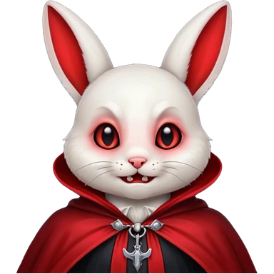 Vampire animal, bunny' in red collar cloak, red eye, fangs emoji