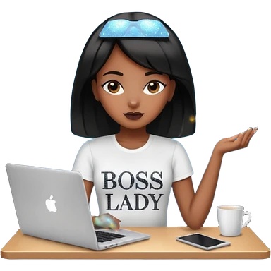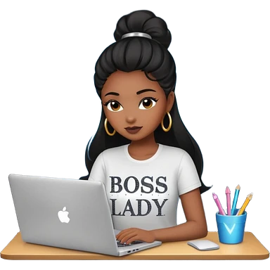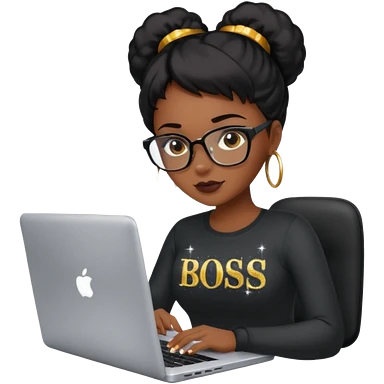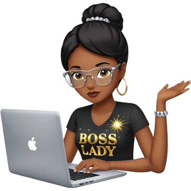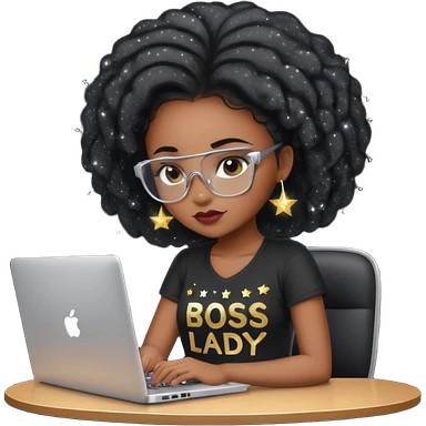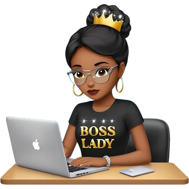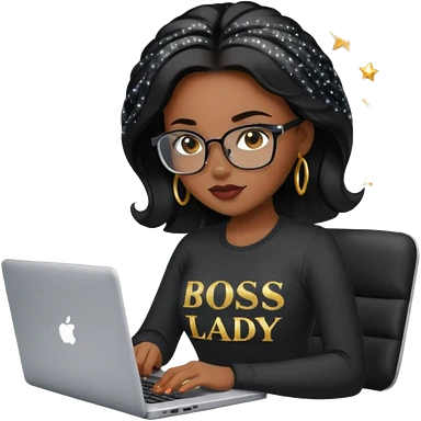black pretty girl working hard with sparkles on laptop "boss lady" spelled out on shirt emoji