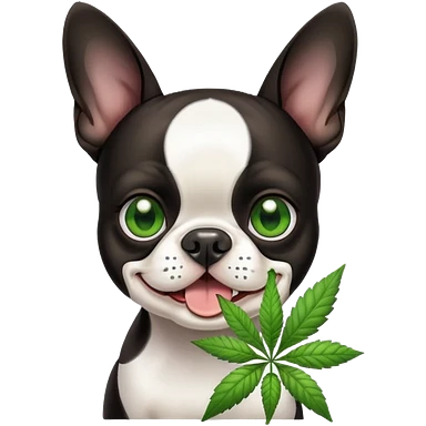 Boston terrier with one brown eye and one blue eye and a coat of brown black and white emoji