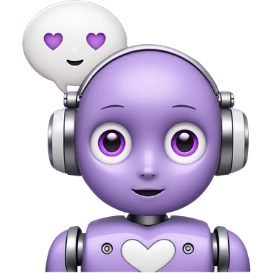 bot in flieder mit herzaugen in weiß mit sprechblase wo steht - lass uns Content erstellen emoji