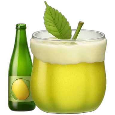 Hombre brazo derecho levantado sujetando una botella de sidra y brazo izquierdo abajo sujetando un vaso de sidra. emoji