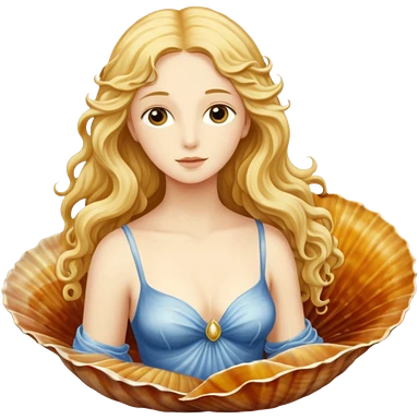 Soft, nurturing, or a bit shy. Very polite and kind. woman in a shell like venus by boticelli more dinamic emoji emoji