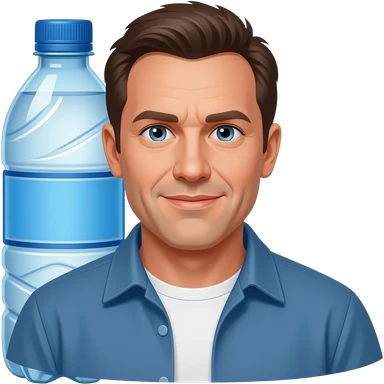 bottle of water with hole in botton with glass on top with green stuff emoji