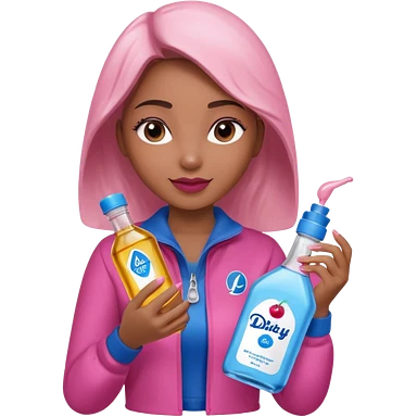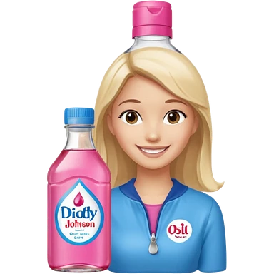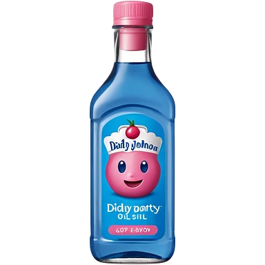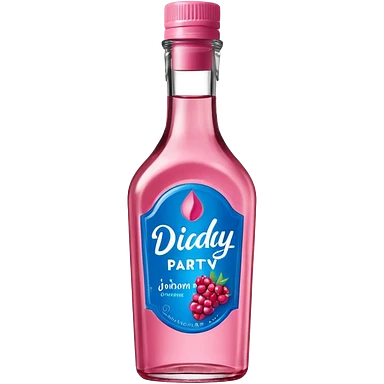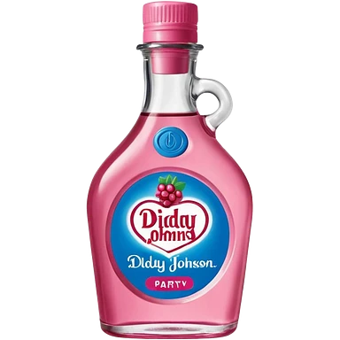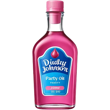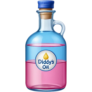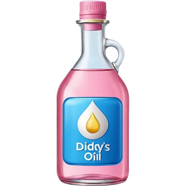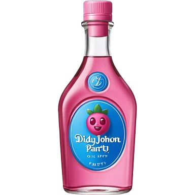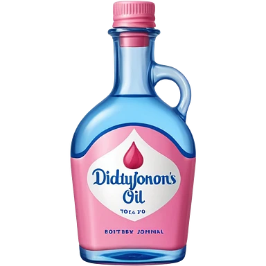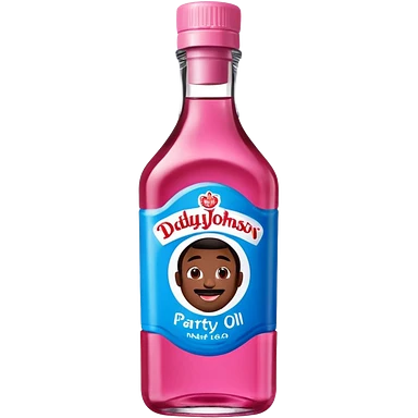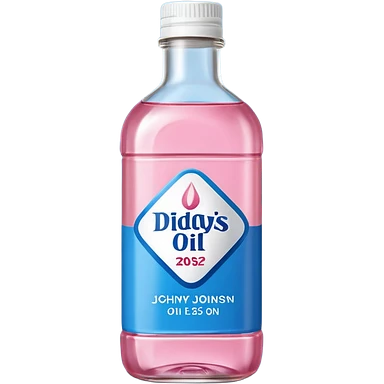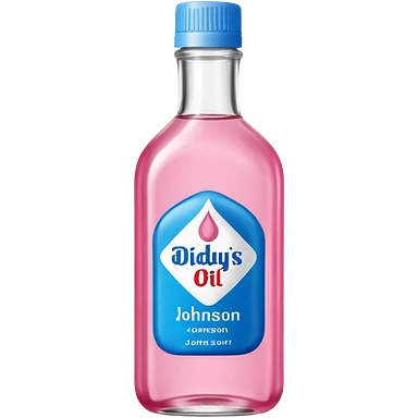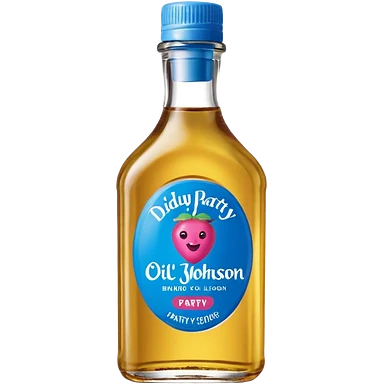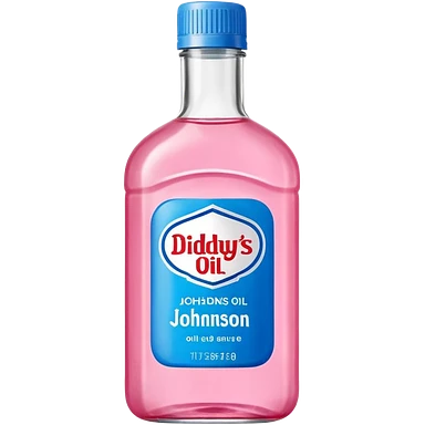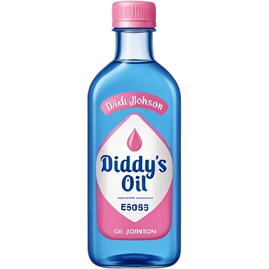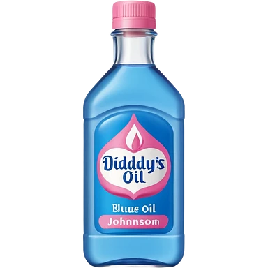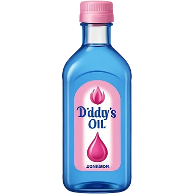 bottle of oil blue top pink outside with logo that says Diddys Oil Johnson and Johnson bottle emoji