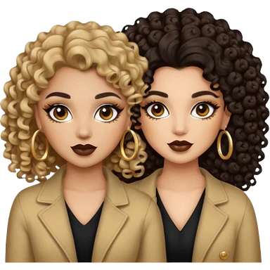 Boujy baddie best friends, trendy heavy makeup both dark hair one light skinned and one light brown with curls emoji