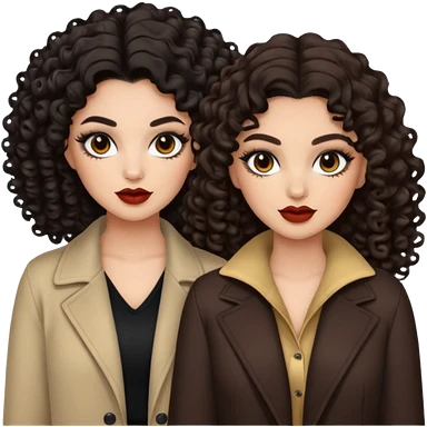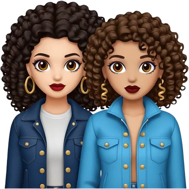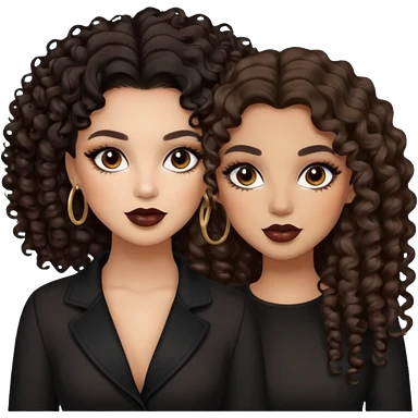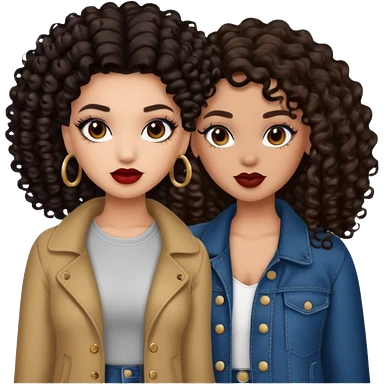 Boujy baddie best friends, trendy heavy makeup both dark hair one light skinned and one light brown and add curls emoji