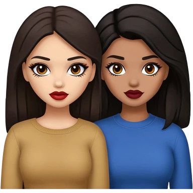 Boujy baddie best friends, trendy heavy makeup both dark hair one light skinned and one mocha brown pretty hair style emoji