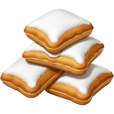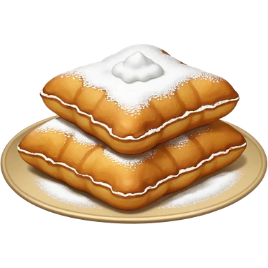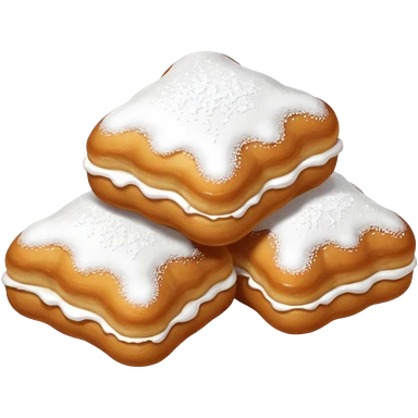 Realistic plate of powdered sugar beignet s with glass cup of chocolate dip. emoji