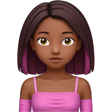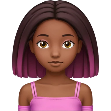 A black 12 yr old girl brushing her shoulder length hair, doe eyes, almond eyes pink tube top and black hair like the 3rd. The first one but hair straight and long and close to body emoji
