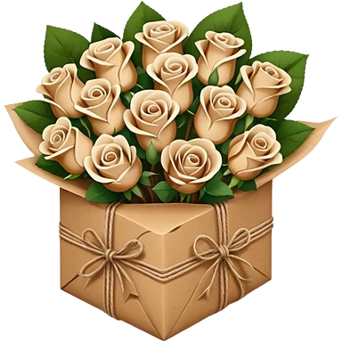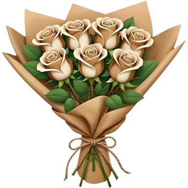 Bouquet of beige and brown roses in a paper package emoji
