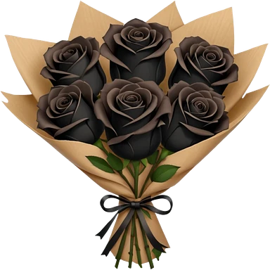 boquet of black n more brown roses in a paper package emoji