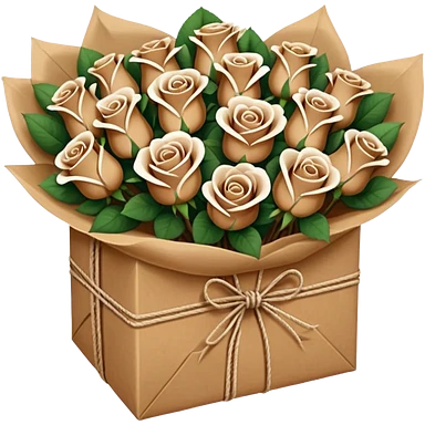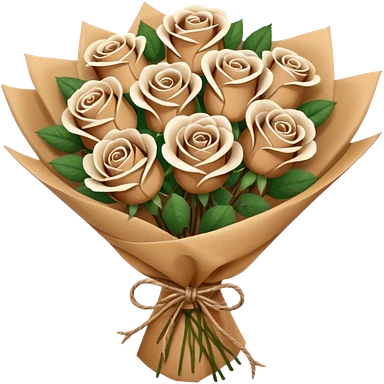boquet of brown/ white roses in a paper package emoji