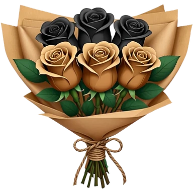 Bouquet of dark brown roses in a paper package emoji | AI Emoji Generator